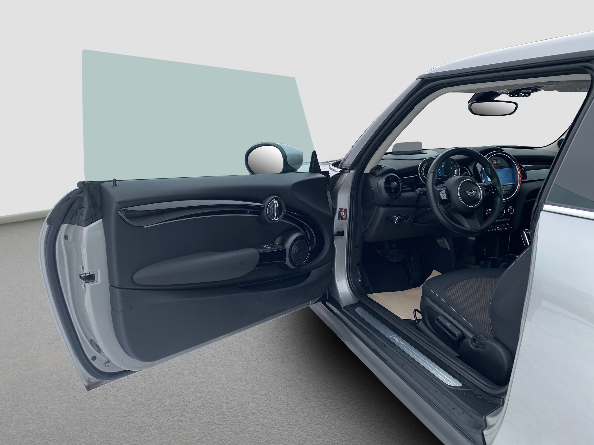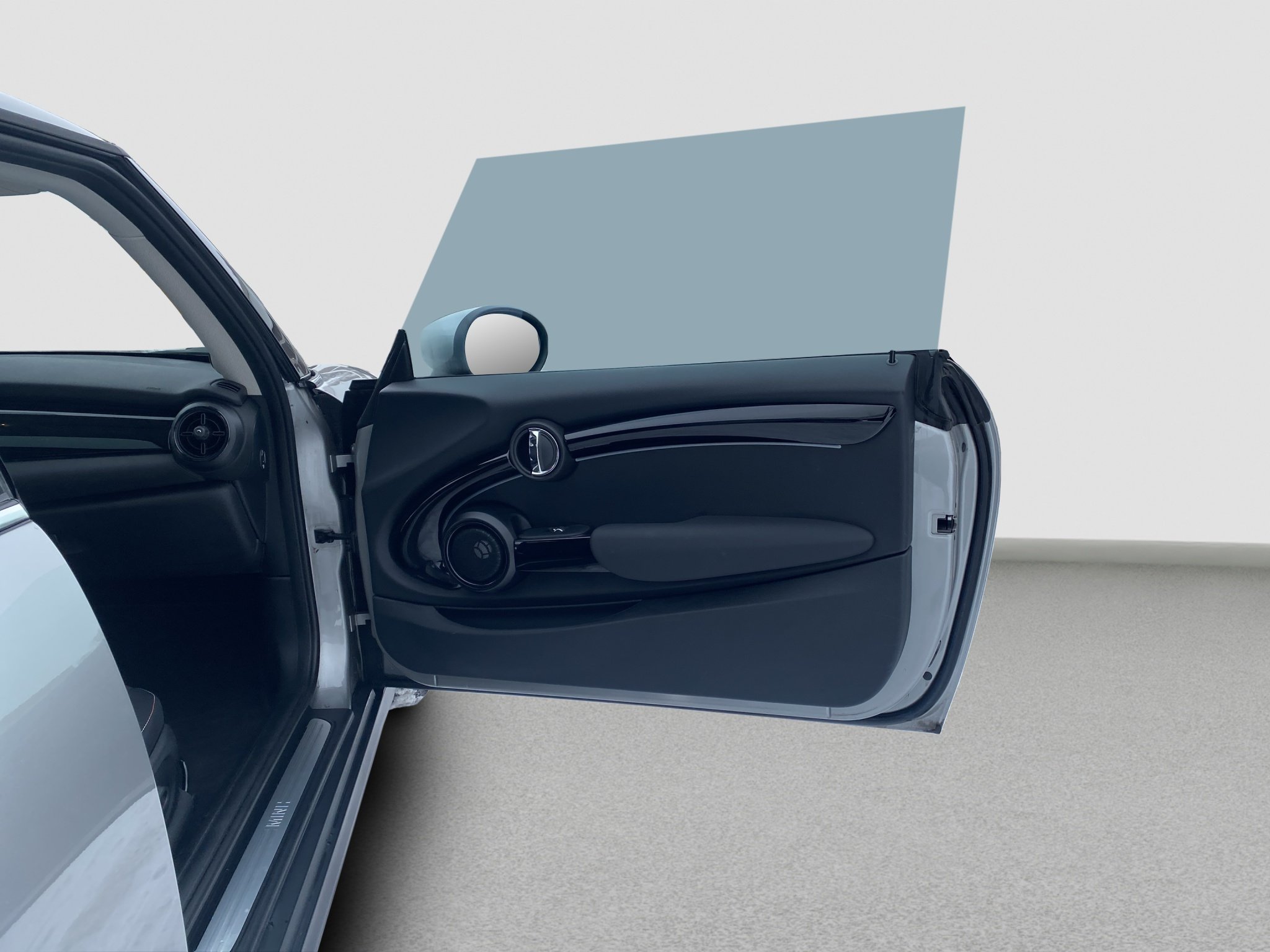 • Schwarzes MINI Logo mit stilisierten Flügeln und Schriftzug in der Mitte.